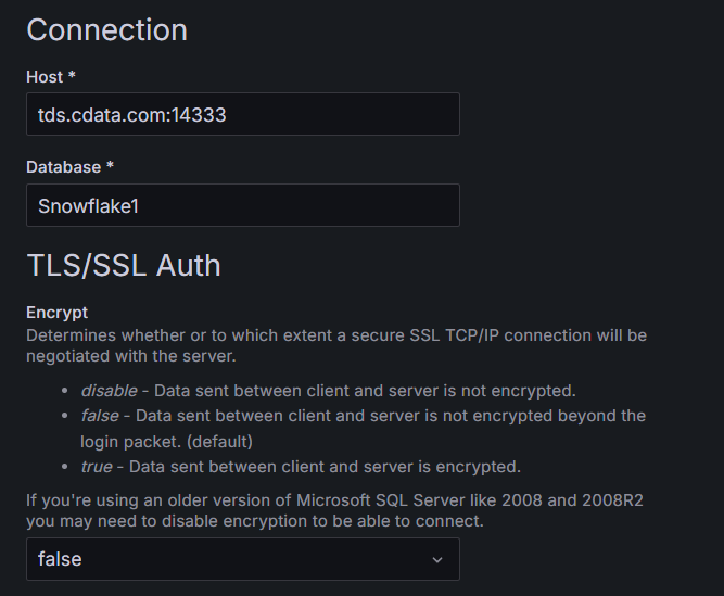 To establish a connection from Grafana to the Connect AI Virtual SQL Server API, follow these steps.Download and install Grafana for your operating system from the Grafana website.