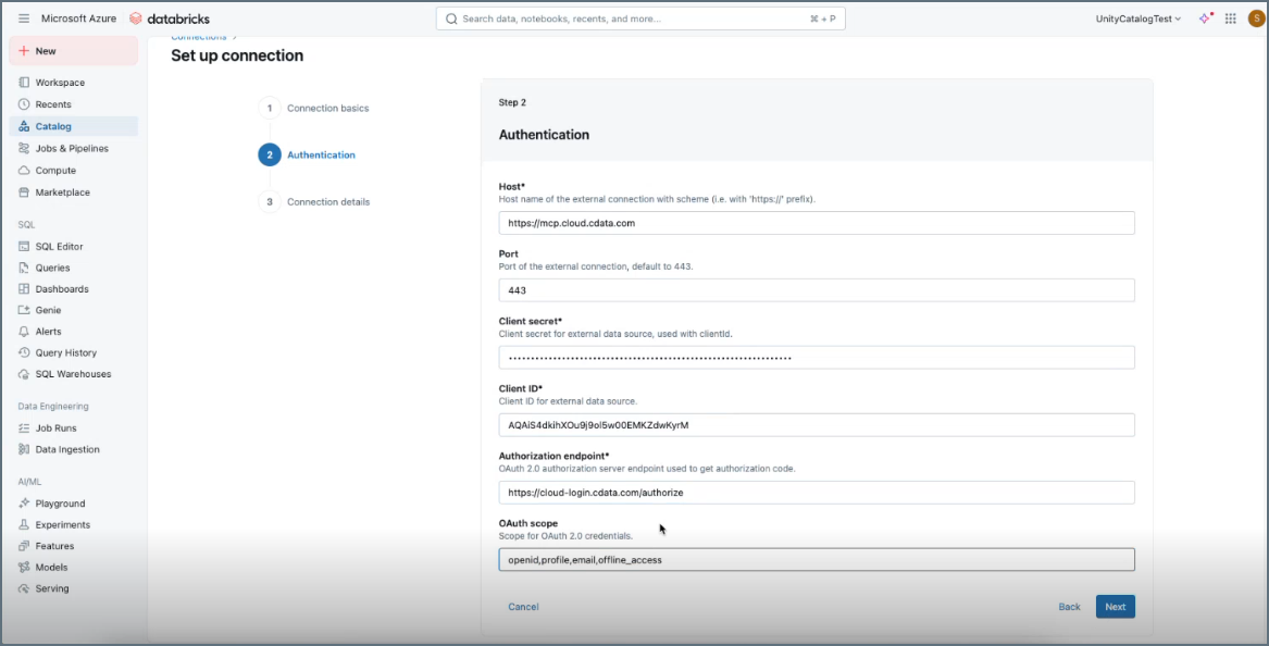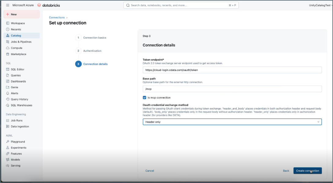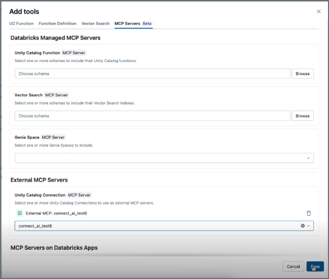 Follow these steps to connect to Connect AI in Agent Bricks: